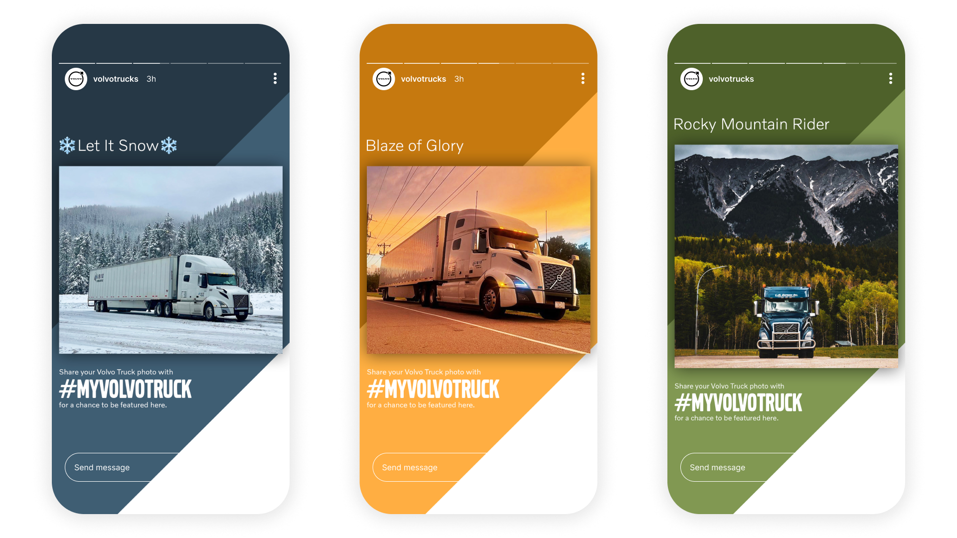 We helped define Volvo Truck's look & feel in print campaigns and social media channels leveraging video, animation, and illustration. We posterized truck photos tagged on social media by making them look like sports car posters.